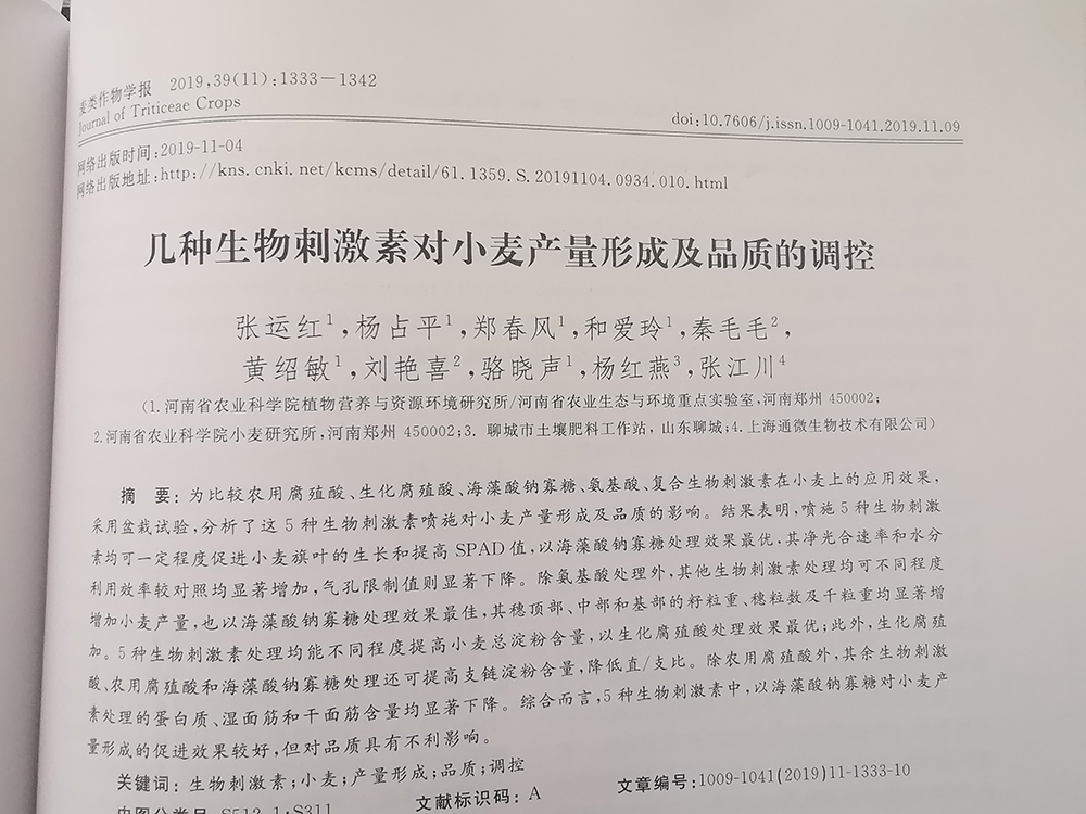 当前位置:首页 > 创新动态 > 黄腐酸对小麦的产量形成及品质调控